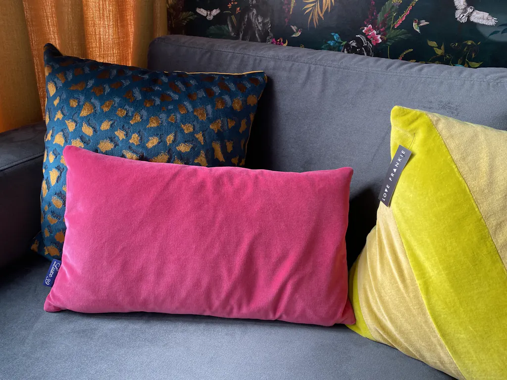 Luxe 39 bright pink velvet cushions are made to order in a choice of 9 sizes and shapes and in either a single colour velvet or a unique double colour with the front and back in gorgeous complimentary shades